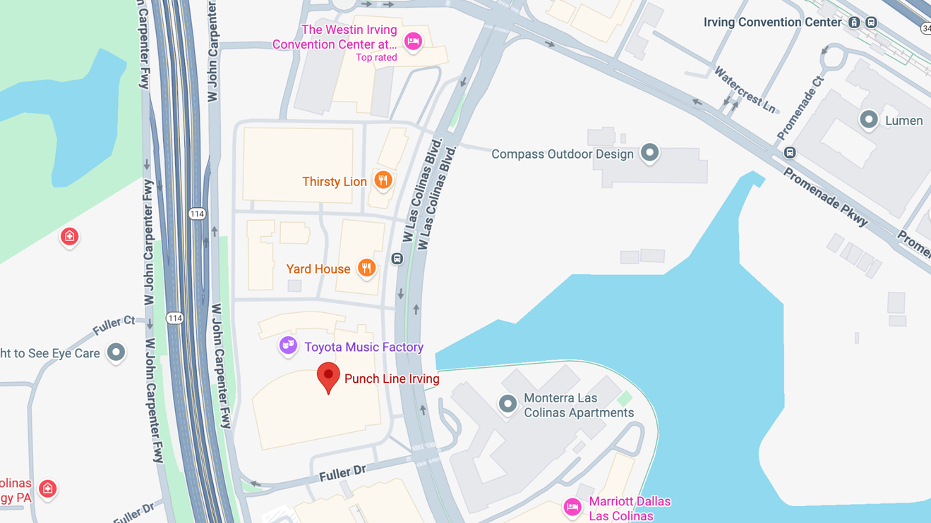 Punch Line Irving is located at: 310 W Las Colinas Blvd., Suite 130 Irving, TX 75039